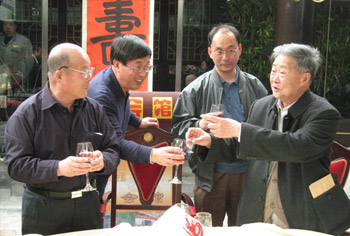 | 2006年公司董事长(左一)、总经理(右二)在寿宴上祝酒 |