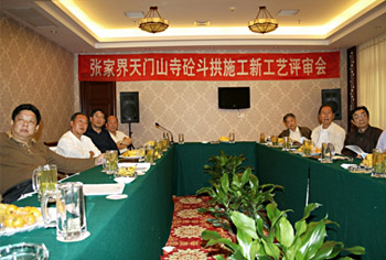 评审专家正在对天门山斗拱新工艺进行评议中 |