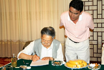 | 罗老在评审报告书上签字 |