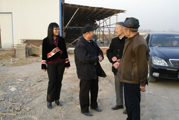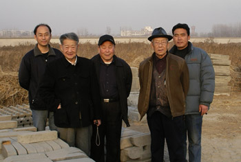 2008年12月8日师傅专程来到天津,参观了混凝土斗拱生产车间,详细询问了生产工艺、产质量等问题。随后又赶赴千佛寺施工现场,不顾年迈,爬上20多米高的脚手架,现场观看了整个混凝土斗拱安装施工过程。微笑始终挂在师傅的脸上,看着师傅兴奋的表情,听着师傅连声的夸奖,我的心里充满了喜悦。