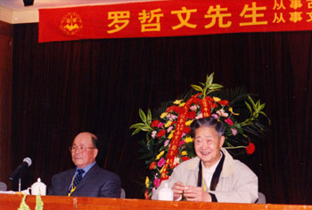 6 2周年、文物工作 5 2周年联谊会,于 2 0 0 3年 4月 2 0日在天津康衢大酒店召开。这次盛会是由我公司全力赞助并操办的,来自北京、天津、南京、上海、广州各大城市,河北、河南、浙江、四川、山西各省及国家文物局、故宫博物院、建设部建研院、清华大学、天津大学、东南大学、华南理工大学等十多个省市和大专院校的专家、学者,和罗哲文先生一起工作过的老同事、老朋友、老专家及弟子等一百二十多个出席了会议。 |