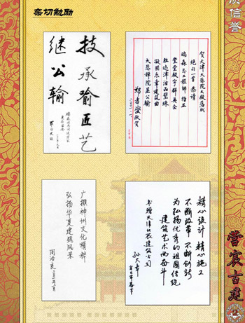 虽然师傅已逝,但师傅用他宽广的胸怀和博学的远见,关心和支持新材料、新工艺、新技术应用于新建传统建筑的精神,仍将继续鼓励我为古建事业继续努力工作。 |