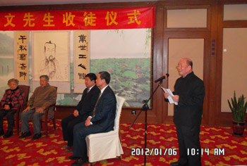 2012年1月6日,中国古建筑学家罗哲文的收徒仪式在北京浙江大厦隆重举行。住房和城乡建设部副部长仇保兴为仪式发来贺信。全国政协委员、国家文物局原党组副书记、副局长张柏,中国文史研究馆馆员、博士生导师舒乙等作为见证人出席收徒仪式,我公司董事长主持罗老的收徒仪式。 |