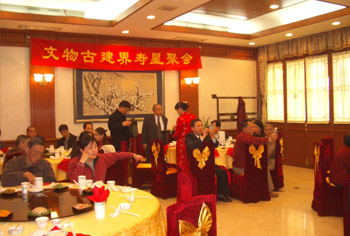 | 中国文物学会主办,由我公司协办的2006年“文物古建界寿星会”在北京中山公园来今雨轩进行,看到第四张照片,建筑大师张开济(鲜花挡住的)及夫人、著名古建筑专家杜仙洲、师爷罗老均已仙逝,另人唏嘘。 |