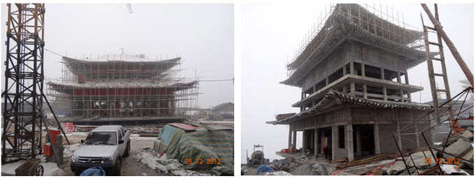 湖北大洪山寺标志建筑大雄宝殿于2012年12月12日9点58分封顶。区相关部门领导到现场视察工作。