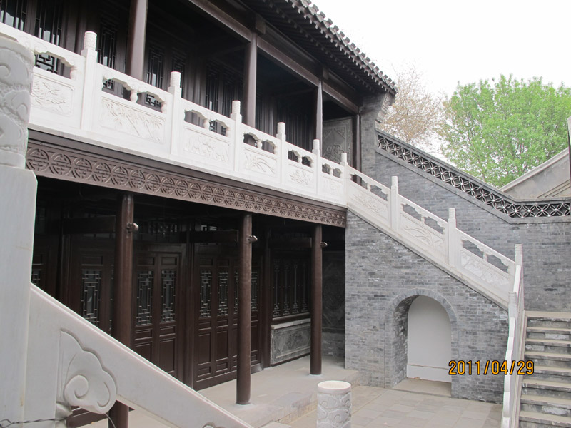 由我公司施工修缮的天津市西青区杨柳青大院文化区项目是天津市20项重大服务业项目之一——杨柳青民俗文化旅游区的子项目。该项目位于千年古镇杨柳青的镇中心,占地60亩,总建筑面积2.5万平方米。自2009年9月份我公司入场开始进行修缮工作,仅用了不到一年的时间(2010年6月30日竣工)就完成了主体工程的建设。