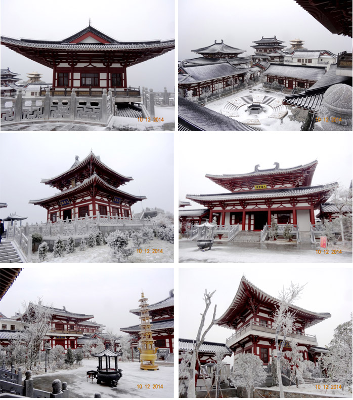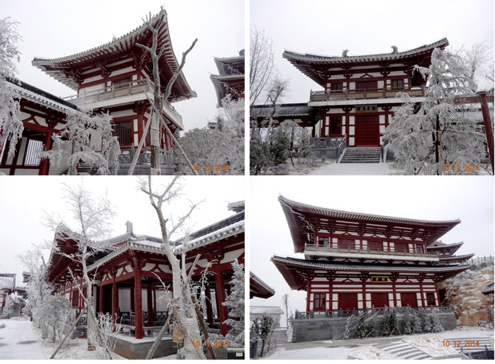 2014年11月,我营宸公司杨新更副总经理带队视察湖北大洪山慈恩寺项目现场。该工程由营宸古建筑工程有限责任公司2011年年初建成,现已历时竣工4年之久,恰逢白白皑雪过后的慈恩寺,给佛学寺院镀上了一层银装,使得更加庄严与肃敬。